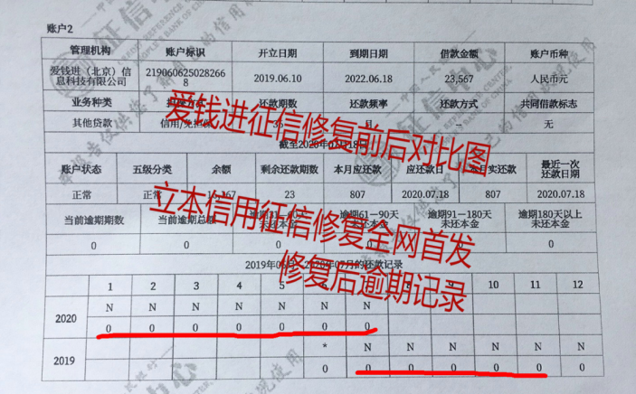 那么征信出現(xiàn)逾期該如何處理呢?眾所周知,逾期事件被處理后的5年后該不良信息才可以在個(gè)人征信報(bào)告中被自動(dòng)刪除。北京立本美好信用有限公司與愛錢進(jìn)網(wǎng)貸機(jī)構(gòu)反復(fù)溝通,基本了解了哪些逾期行為產(chǎn)生的征信不良記錄可以被修復(fù),哪些不能修復(fù)。如此,立本信用就可以代表有征信不良記錄的借款人準(zhǔn)確無誤地與愛錢進(jìn)等網(wǎng)貸機(jī)構(gòu)溝通,更改后,快速上報(bào)人民銀行征信中心。愛錢進(jìn)的修復(fù)征信不需要再等五年。