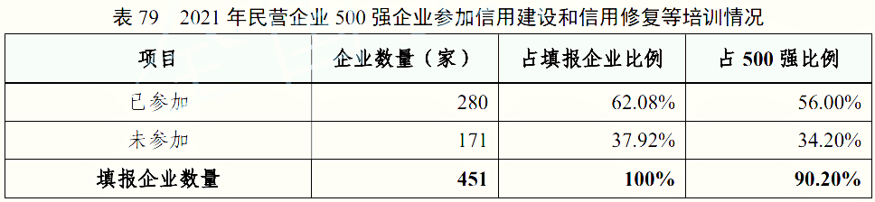 4、2022中國民營企業(yè)500強參加信用建設和信用修復等培訓情況
