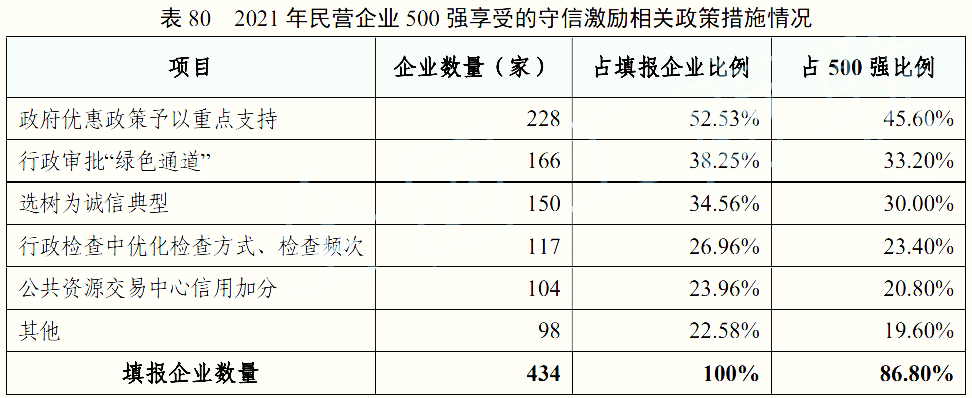 5、2022中國民營企業(yè)500強享受守信激勵相關政策措施情況