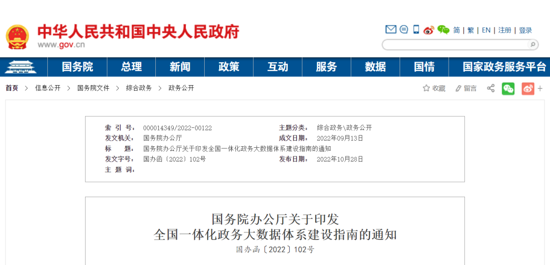 全國(guó)一體化政務(wù)大數(shù)據(jù)體系建設(shè)指南